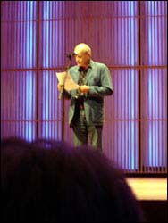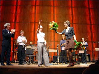 Alwynne Pritchard after the performance of Decoy by the Nieuw Ensemble,